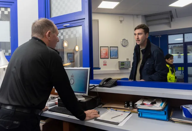 In Monday’s (2 March) scenes, Kit and girlfriend Sarah Platt are grilled by Brody Michaelis over the attack on Mal. As the pair share a nervous glance, Brody twigs that they are hiding something.