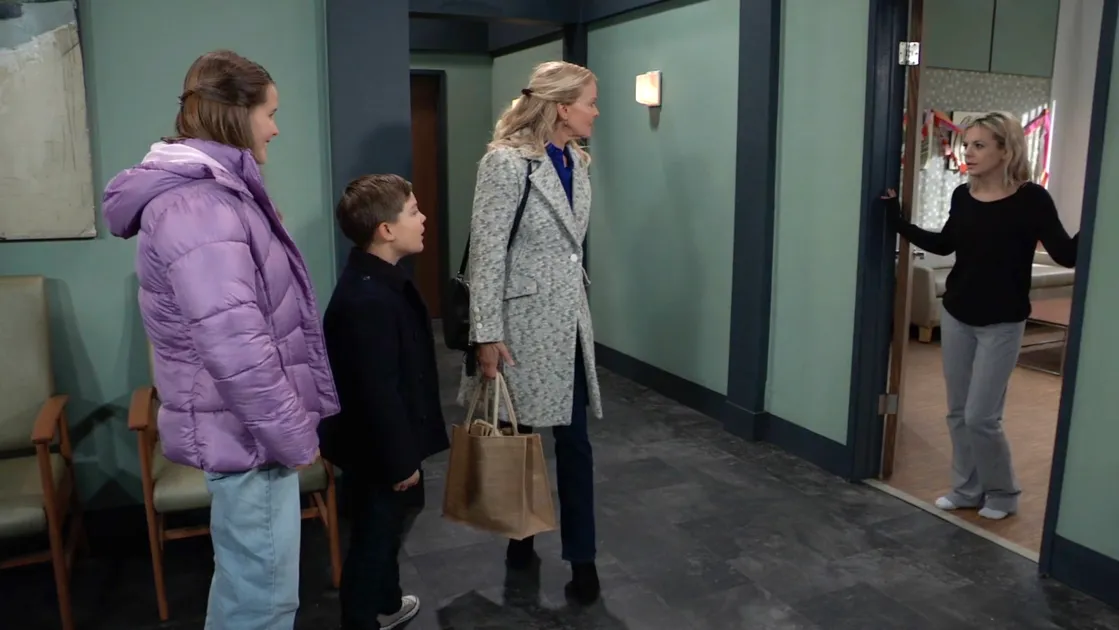 After informing Maxie that he’d just started playing hockey (“Don’t you want to see me play?”), James traded places with his big sister. Weeping, Georgie threw herself on top of her mom, pleading with her to wake up, while in the corridor, James noted to Felicia that his friends at school wanted to meet “his real dad,” meaning Nathan (Ryan Paevey), his biological father, who had been presumed dead until the previous fall. “Not that Spinelli isn’t my real dad, too,” James added. Felicia told him she knew what he meant, and Georgie soon joined them out in the hall. “Your turn, Grandma,” she chirped. Felicia shot a look at her mischievous grandson, who promised he would stay put. “Don’t worry, I’ll watch him,” promised Georgie.
