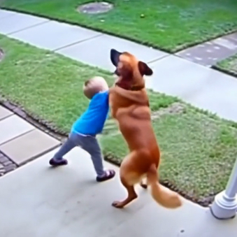 …was still lying peacefully, showing no signs of aggression. The little girl, however, seemed fascinated by Rocky’s wagging tail. She