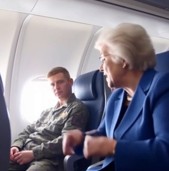 The cool, controlled atmosphere of the airplane was abruptly shattered by the palpable tension between the woman and the young